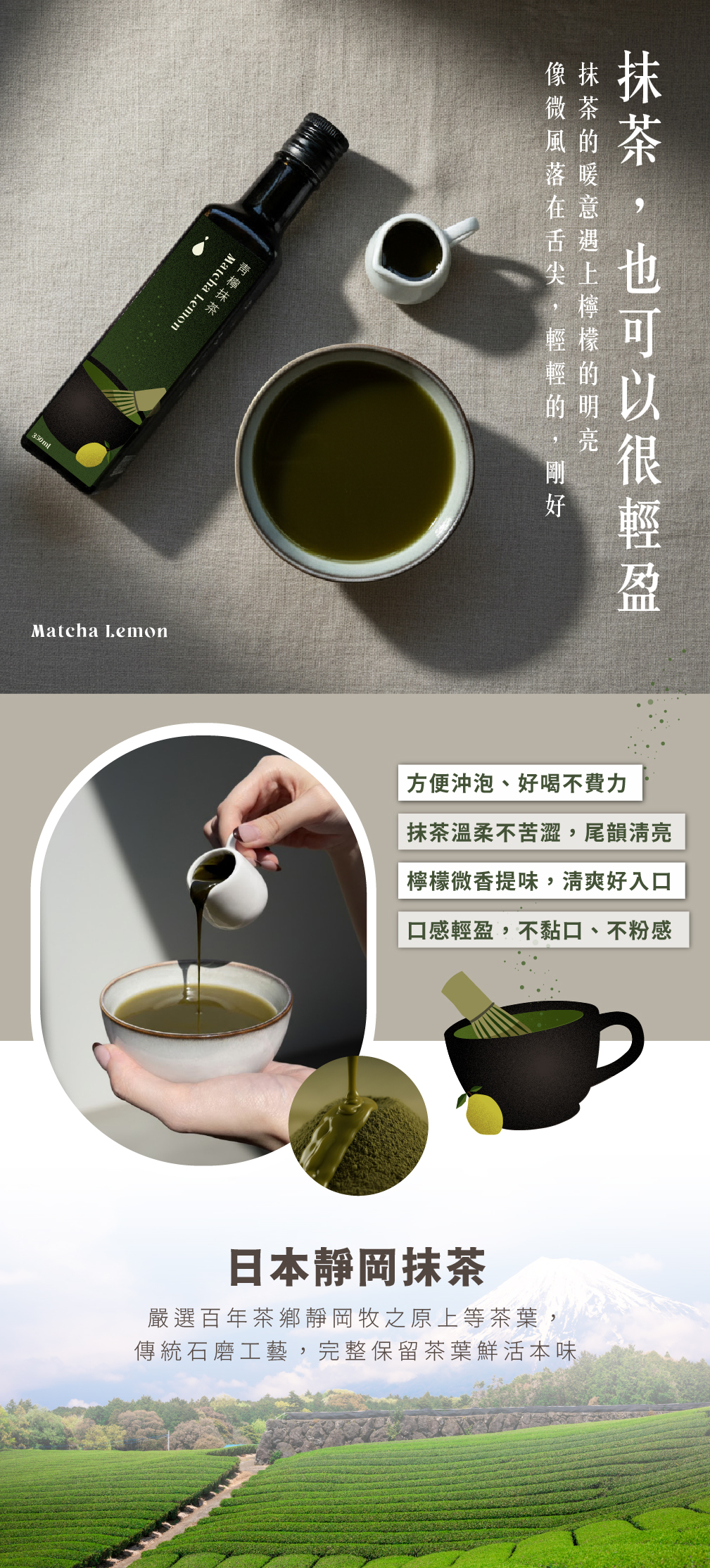 產地:採用南台灣九如鄉的翠綠無籽檸檬與日本靜岡抹茶粉