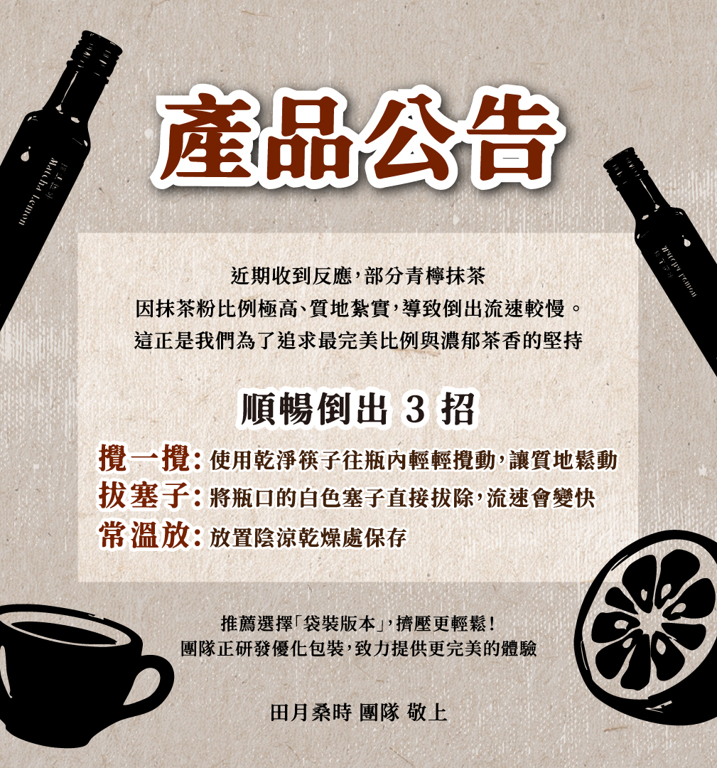 A:青檸抹茶內含檸檬汁,這是新鮮檸檬 榨汁後會釋出的天然油脂,為正常現象喔