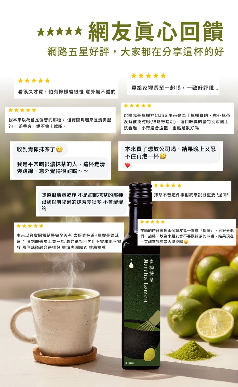 靜岡抹茶的香氣,融合南台灣檸檬的微酸,一杯輕盈不膩的清新日常