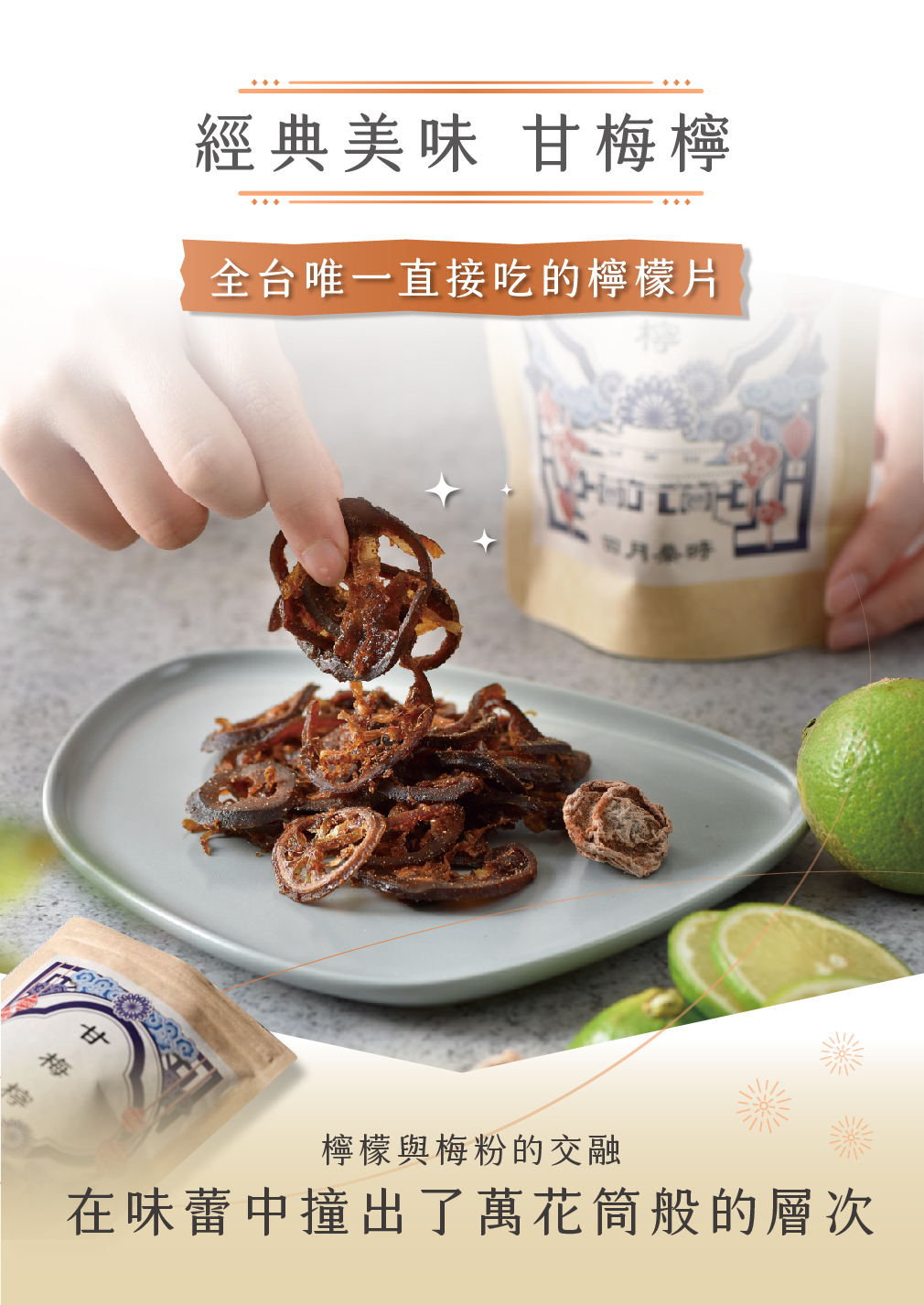 甘之如飴,沉梅融檸香,不管是古早檸檬乾或是中藥行的蜜餞,甘梅檸的美味絕對讓您品嚐完後大讚一番。
